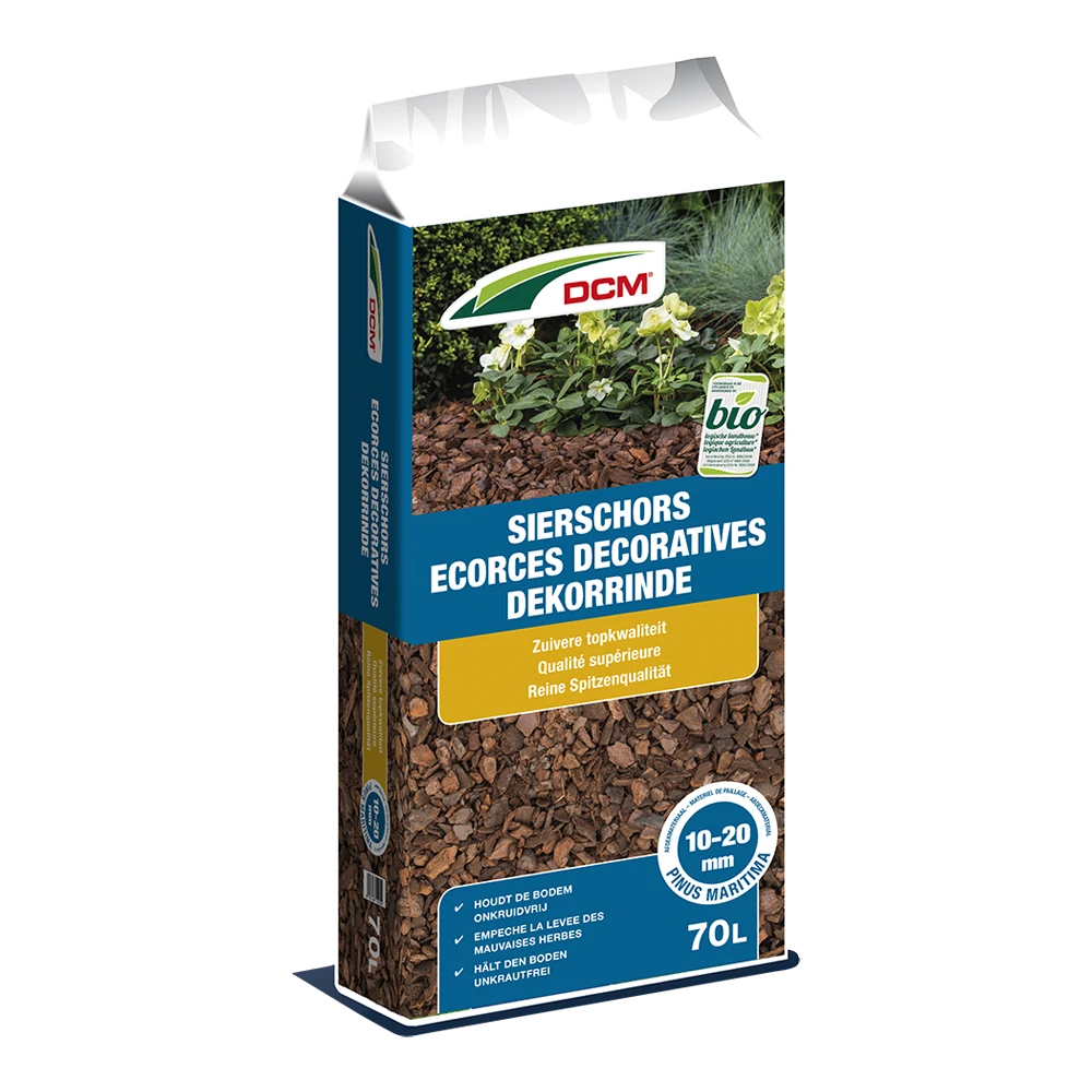 Bruinrode schors, uitgezeefd op fractie 10-20 mm. Kleurvast en decoratief natuurproduct dat als fysische barrière de bodem onkruidvrij houdt en beschermt tegen uitdroging en vorst. Verteert zeer langzaam.