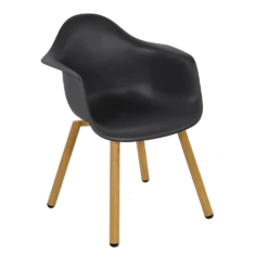 Het onderstel van de stoel heeft een houtlook, maar is vervaardigd uit aluminium. Hierdoor staat het niet alleen mooi, maar is de stoel ook onderhoudsvriendelijk! Het zitgedeelte is gemaakt van kunststof en bevat gaatjes voor de afvoer van (regen)water. Kunststof is sterk, onderhoudsarm en licht in gewicht. Beide materialen zijn zeer geschikt voor buiten.